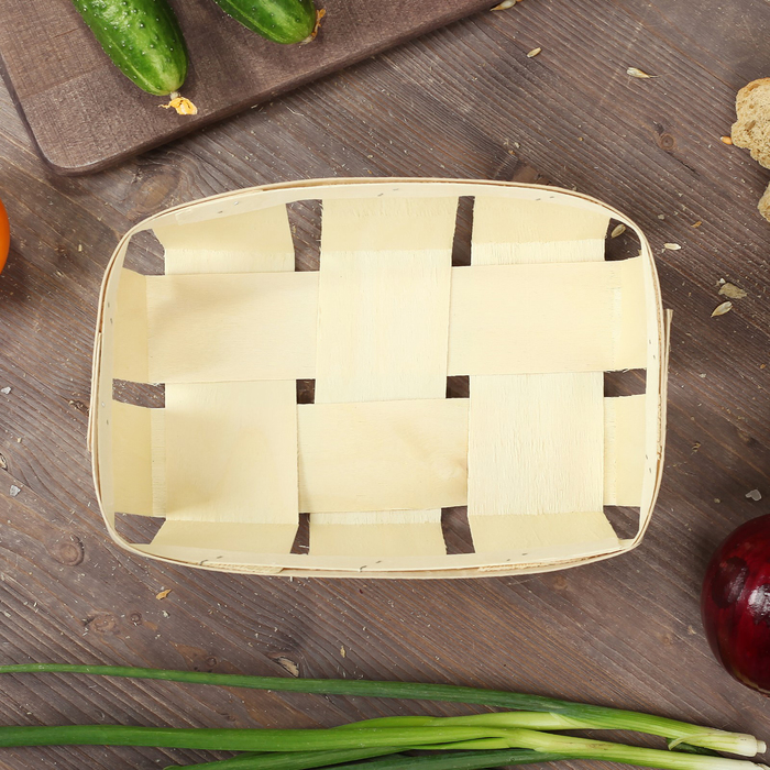Обеспечить длительный срок хранения продуктов вам поможет Корзинка из шпона, 240 х 150 х 60 мм, бук. Эргономичное изделие используется в качестве одноразовой посуды.