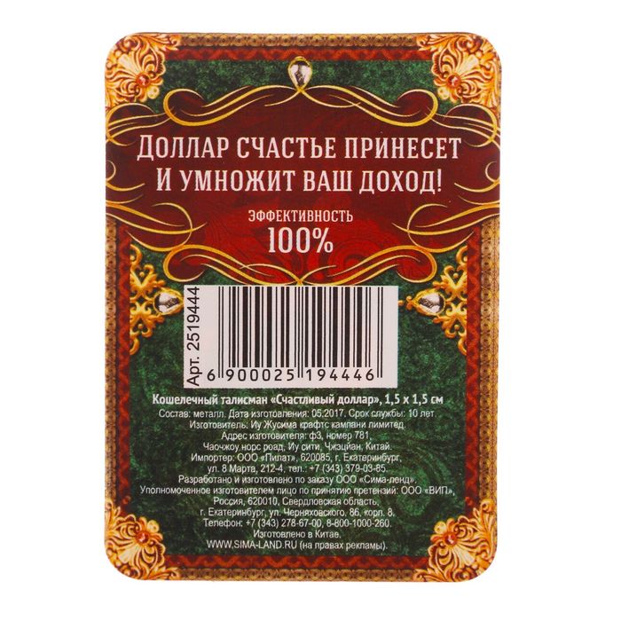Кошелечный талисман "Счастливый доллар"