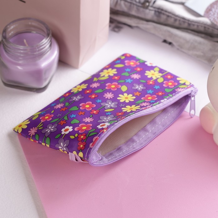 Кошелёк детский "Цветы", 1 отдел на молнии, с ручкой, цвет фиолетовый