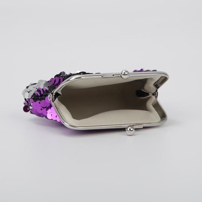 Кошелёк детский "Сияние", пайетки, отдел на фермуаре, цвет фиолетовый/серебристый