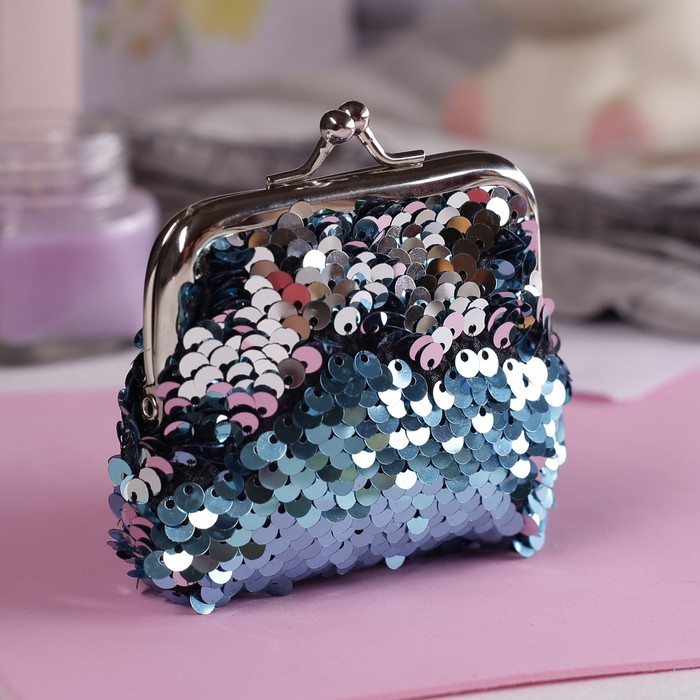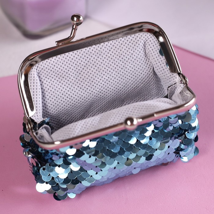 Кошелёк детский "Сияние", пайетки, отдел на фермуаре, цвет голубой/серебристый