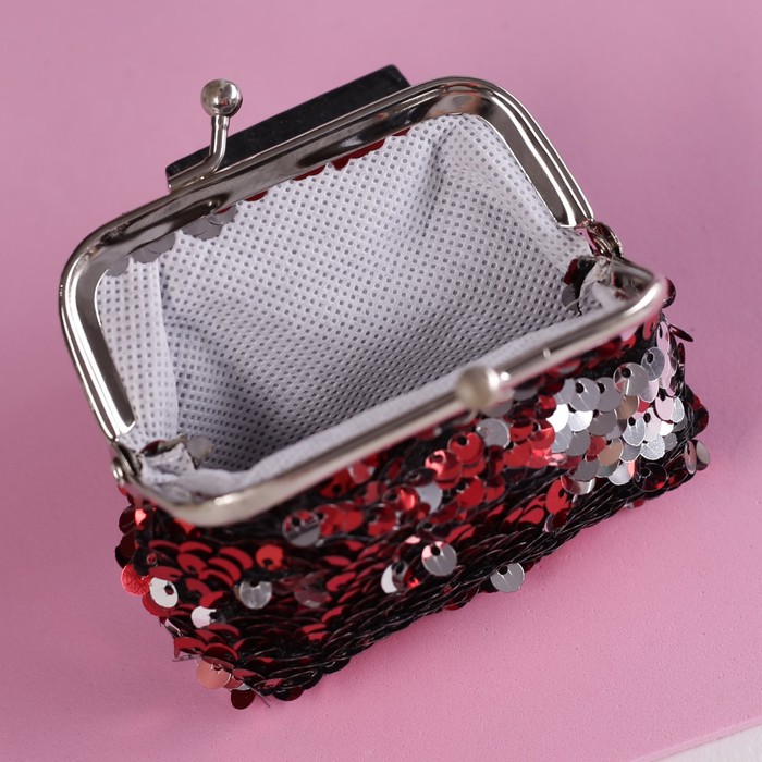 Кошелёк детский "Сияние", пайетки, отдел на фермуаре, цвет красный/серебро