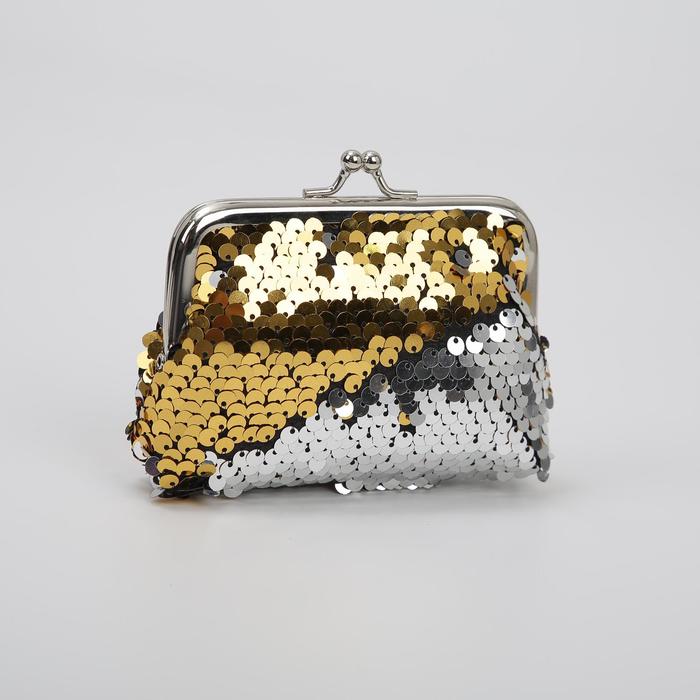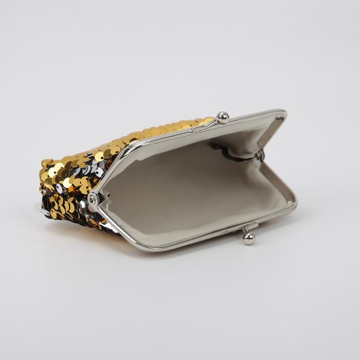 Кошелёк детский "Сияние", пайетки, отдел на фермуаре, цвет жёлтый/серебристый