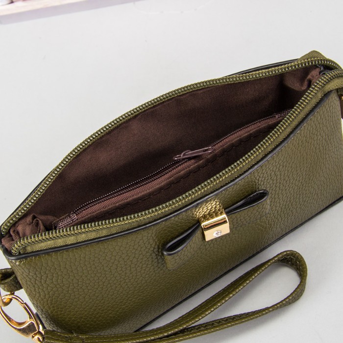 Кошелёк-клатч женский, 2 отдела, для монет, с ручкой, цвет зелёный