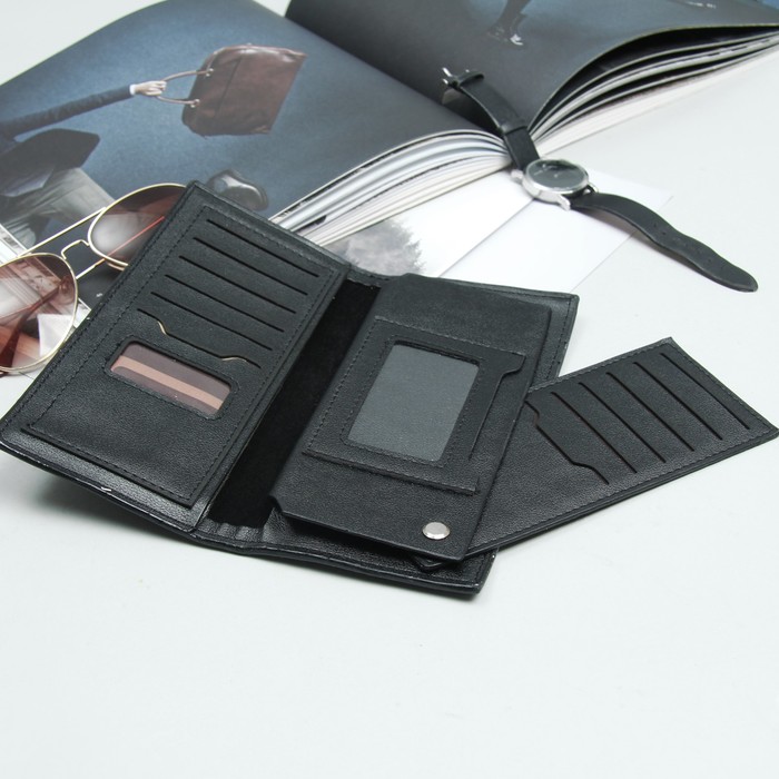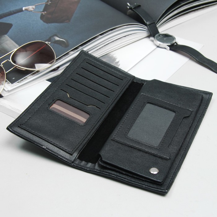 Кошелёк мужской, 4 отдела, для карт, для монет, цвет чёрный