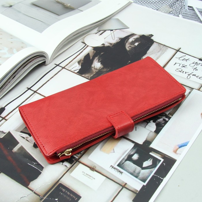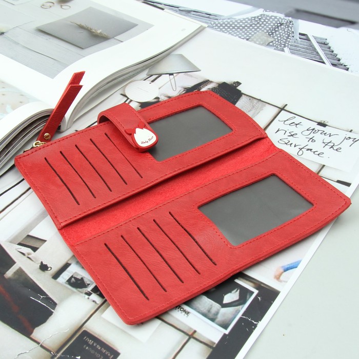 Кошелёк раскладной, 2 отдела, для карт, для монет, на кнопке, цвет красный