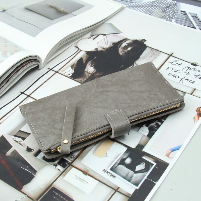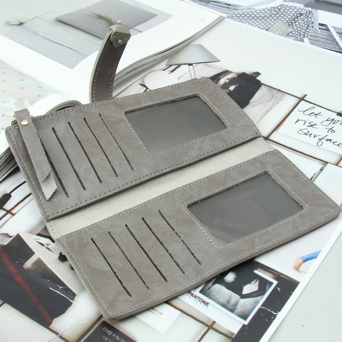 Кошелёк раскладной, 2 отдела, для карт, для монет, на кнопке, цвет серый