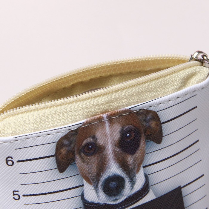 Кошелёк "Собака в законе", отдел на молнии, с кольцом, цвет белый/коричневый