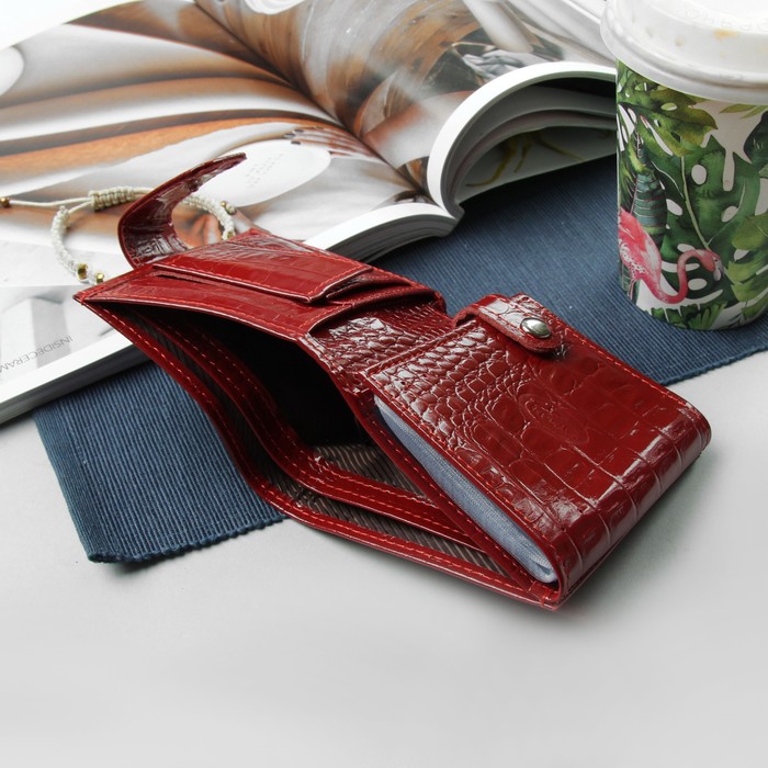 Кошелёк-визитница женский на кнопке, 2 отдела, отдел для карт,12 листов, красный кайман