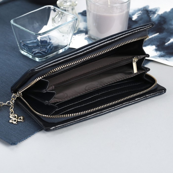 Кошелёк жен, 5 отделов, для карт, для монет на молнии, цвет синий