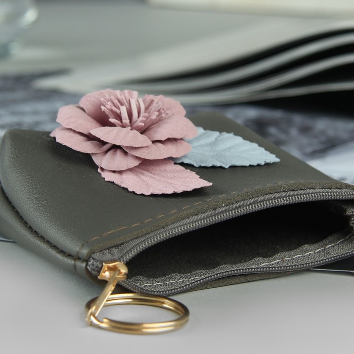 Кошелёк жен, отдел на молнии, кольцо, цвет чёрный