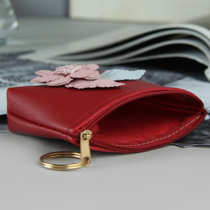 Кошелёк жен, отдел на молнии, кольцо, цвет красный