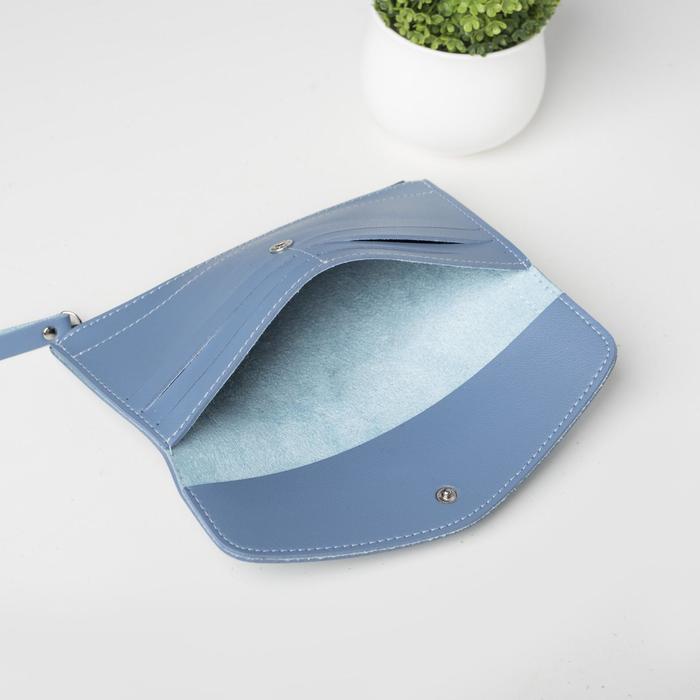 Кошелёк женский, 1 отдел, для карт, монет, цвет голубой
