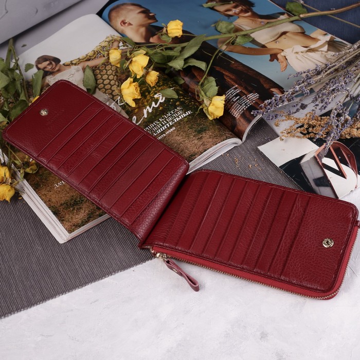 Кошелёк женский, 1 отдел на молнии, для карт на кнопке, цвет бордовый
