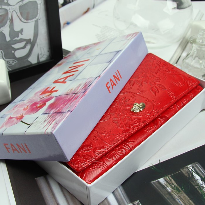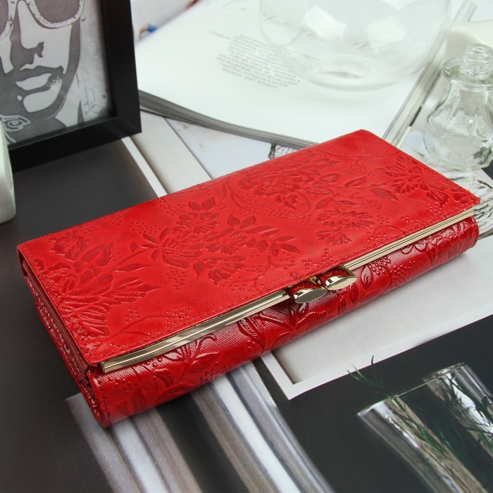 Кошелёк женский, 2 отд рамка, 3 отдела, для карт, для монет, цвет красный