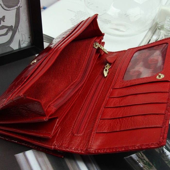 Кошелёк женский, 2 отд рамка, 3 отдела, для карт, для монет, цвет красный