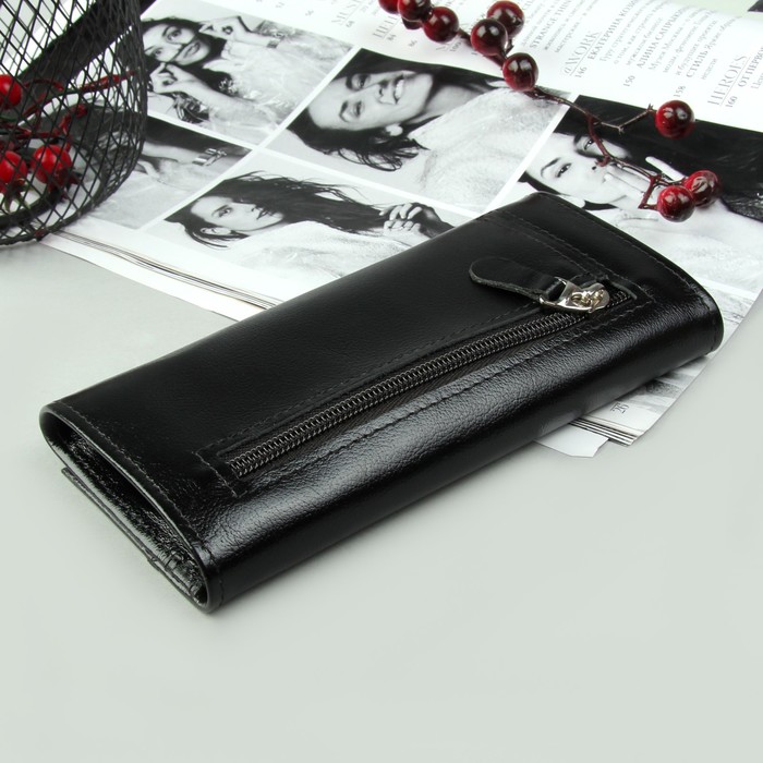 Кошелёк женский, 2 отдела, для карт, для монет, 1 наружный карман, цвет чёрный глянцевый