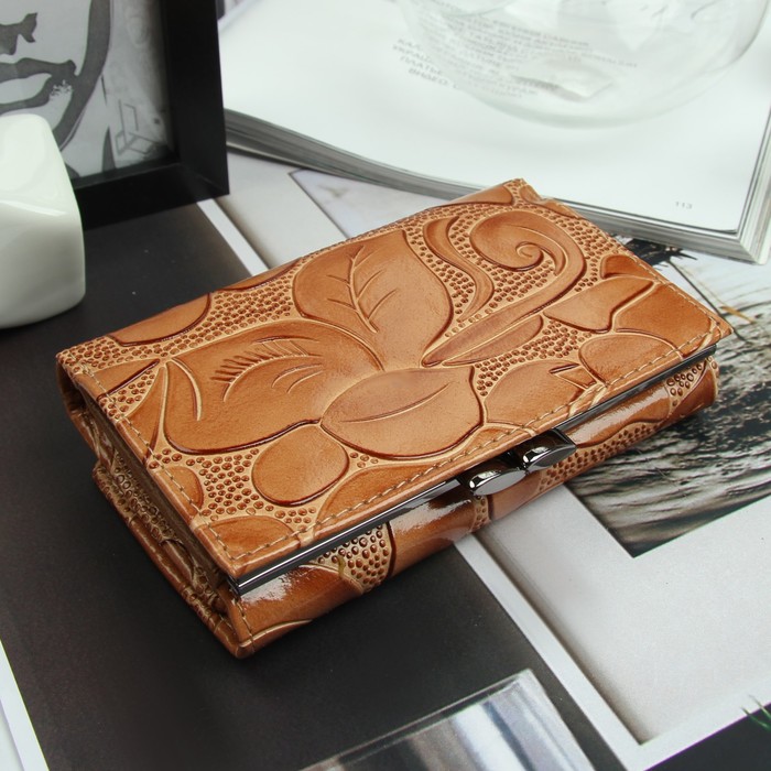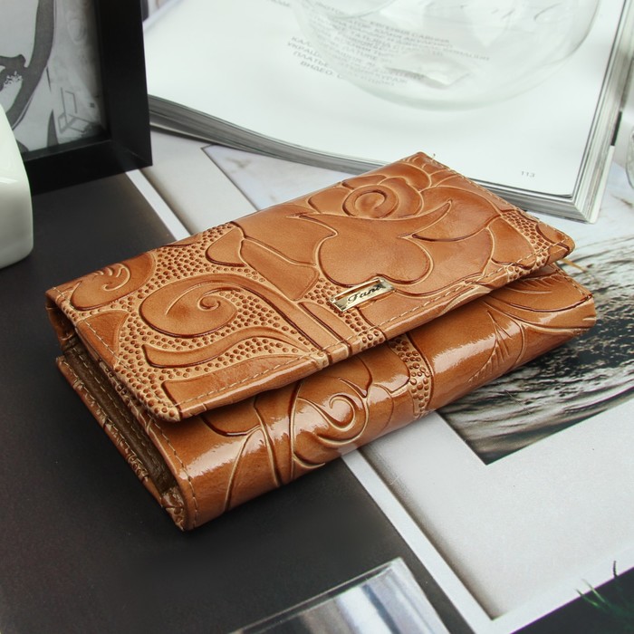 Кошелёк женский, 2 отдела, для карт, для монет, цвет бежевый