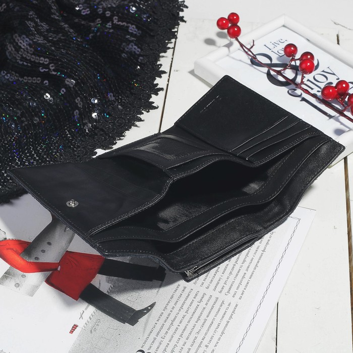 Кошелёк женский, 2 отдела, для карт, для монет, цвет чёрный