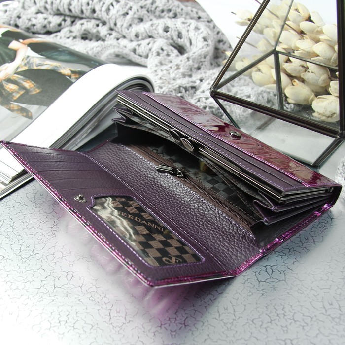 Кошелёк женский, 2 отдела, для карт, для монет, цвет фиолетовый