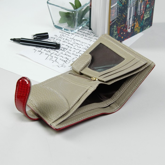 Кошелёк женский, 2 отдела, для карт, для монет, цвет красный