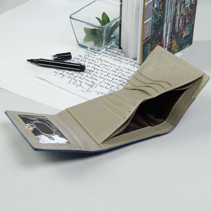 Кошелёк женский, 2 отдела, для карт, для монет, цвет синий