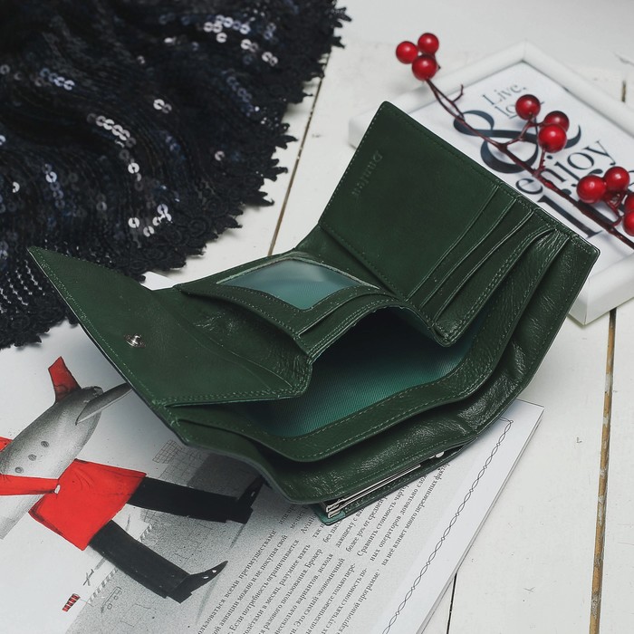 Кошелёк женский, 2 отдела, для карт, для монет, цвет зелёный