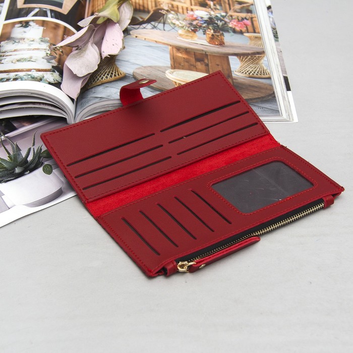 Кошелёк женский, 2 отдела, для карт, для монет, фурнитура металл, цвет бордовый