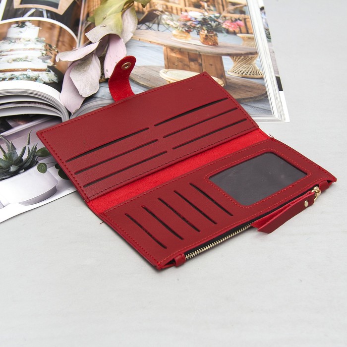 Кошелёк женский, 2 отдела, для карт, для монет, фурнитура металл, цвет бордовый