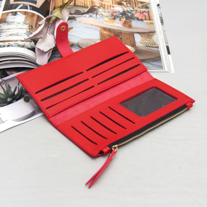 Кошелёк женский, 2 отдела, для карт, для монет, фурнитура металл, цвет красный