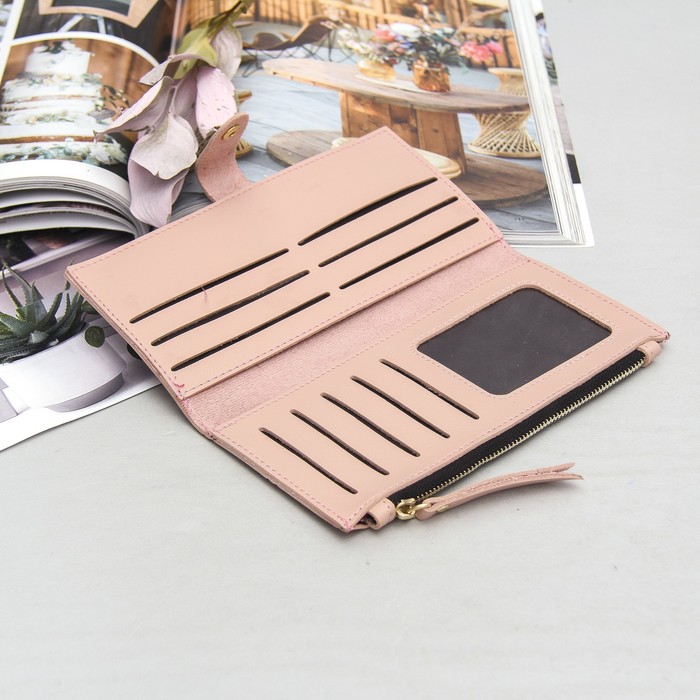 Кошелёк женский, 2 отдела, для карт, для монет, фурнитура металл, цвет пудровый