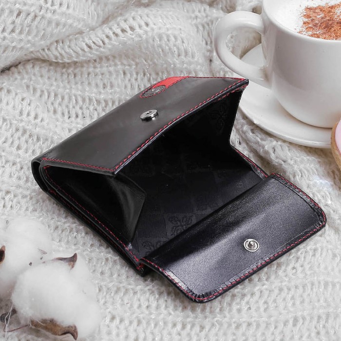 Кошелёк женский, 2 отдела, для карт, для монет, карман д/sim карты, цвет чёрный