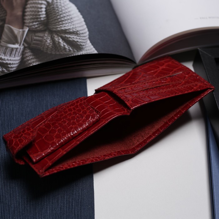 Кошелёк женский, 2 отдела, для карт, для монет, крокодил, цвет красный