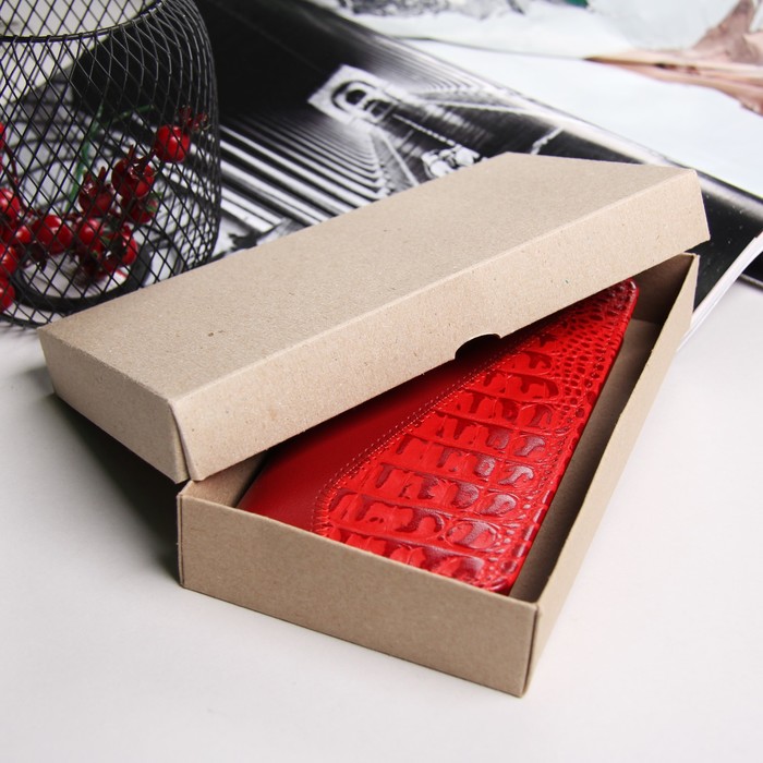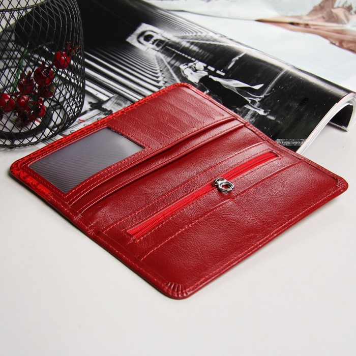 Кошелёк женский, 2 отдела, для карт, для монет, матовый красный/крокодил красный
