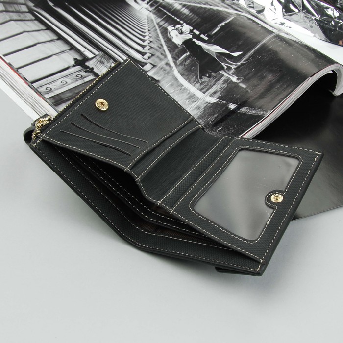 Кошелёк женский, 2 отдела, для карт, для монет, наружный карман, цвет чёрный