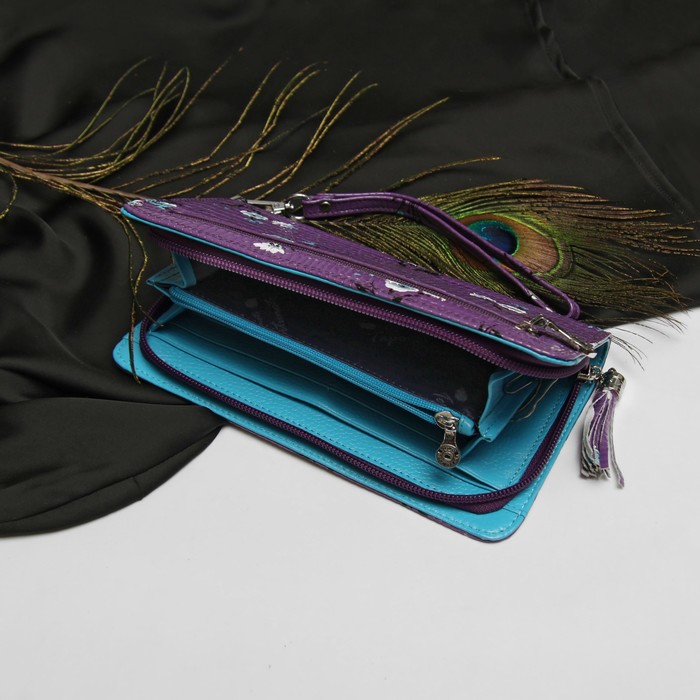 Кошелёк женский, 2 отдела, для карт, для монет, с ручкой, крокодил сиреневый