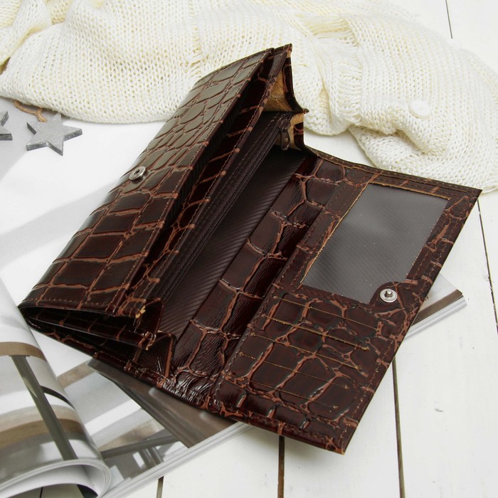 Кошелёк женский, 2 отдела, для карт, для монет, скат светло-коричневый