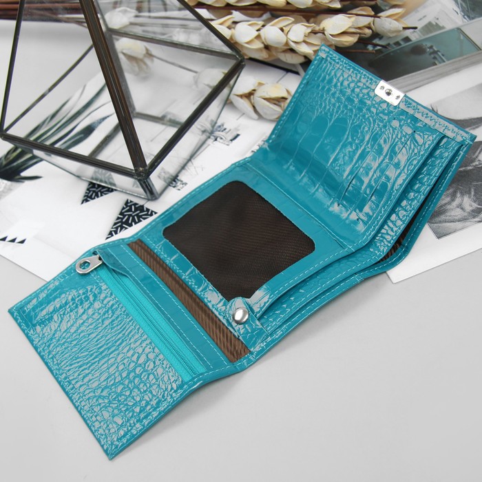 Кошелёк женский, 2 отдела, для карт, кайман бирюзовый