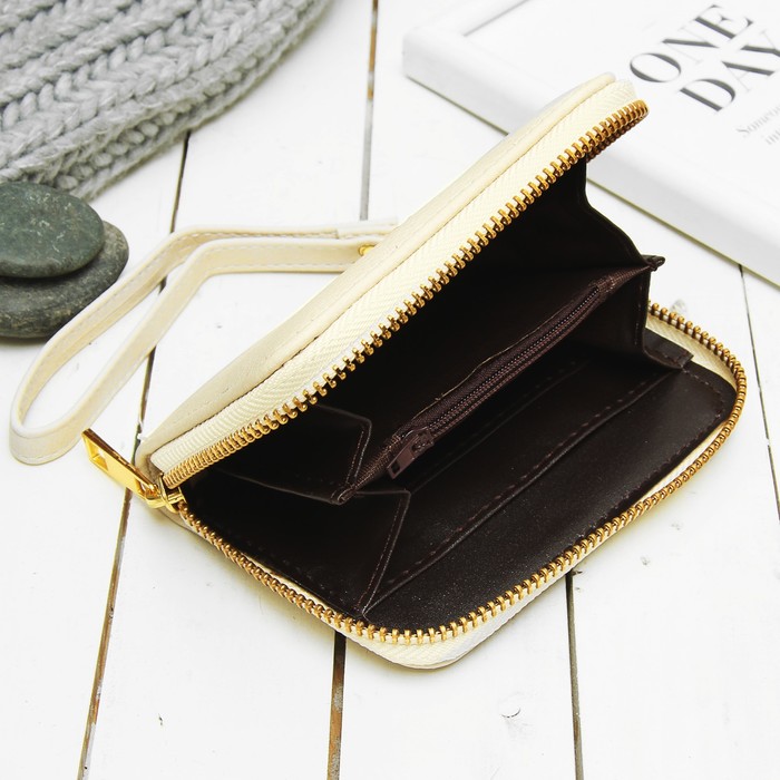Кошелёк женский, 2 отдела, для карт, монет, цвет светло-бежевый