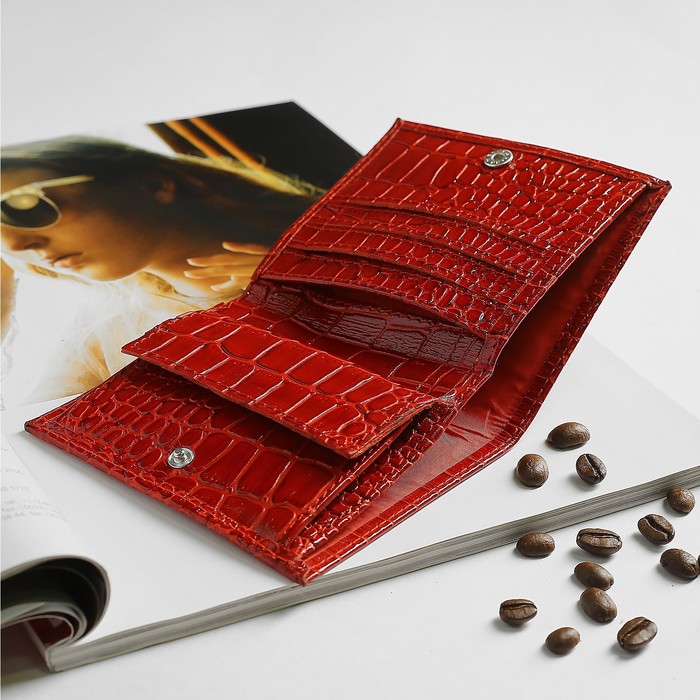 Кошелёк женский, 2 отдела, для карт, монет, крокодил, цвет красный