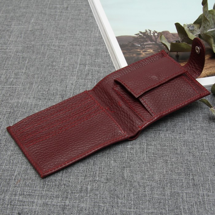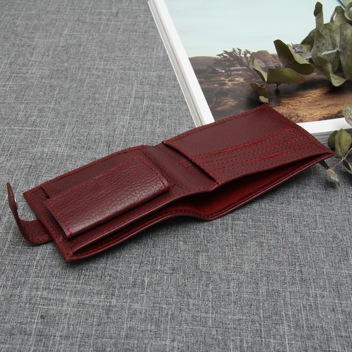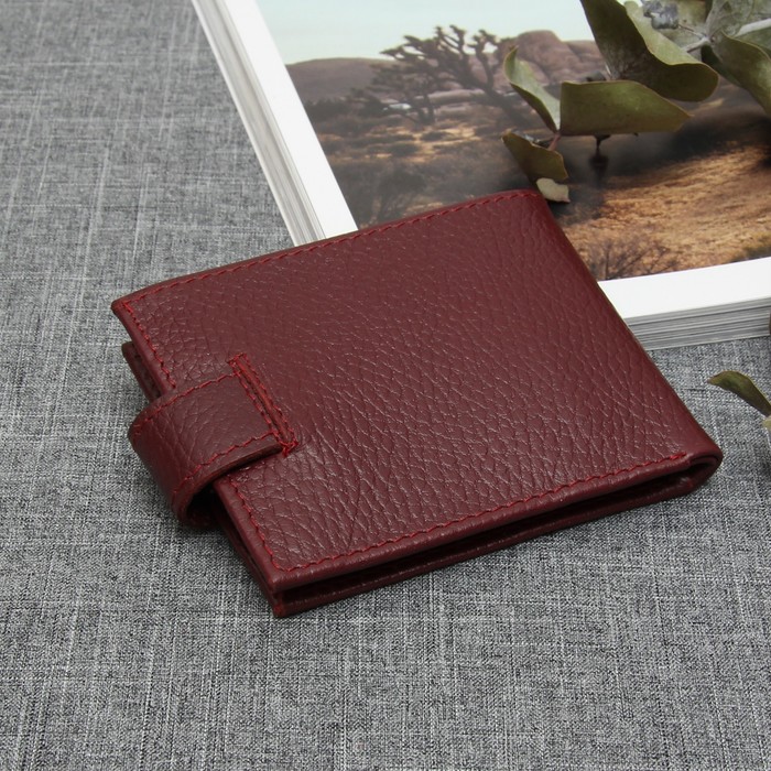 Кошелёк женский, 2 отдела, для карт, монет, с хлястиком, флоттер, цвет винный
