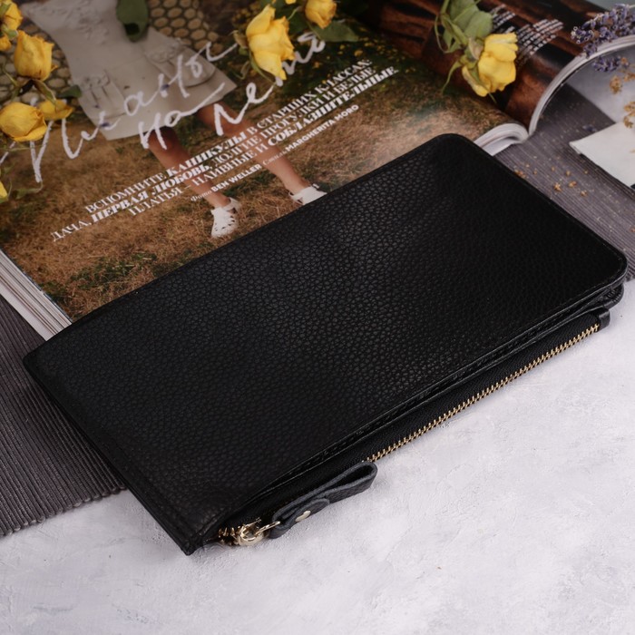 Кошелёк женский, 2 отдела, для карт на кнопке, цвет чёрный