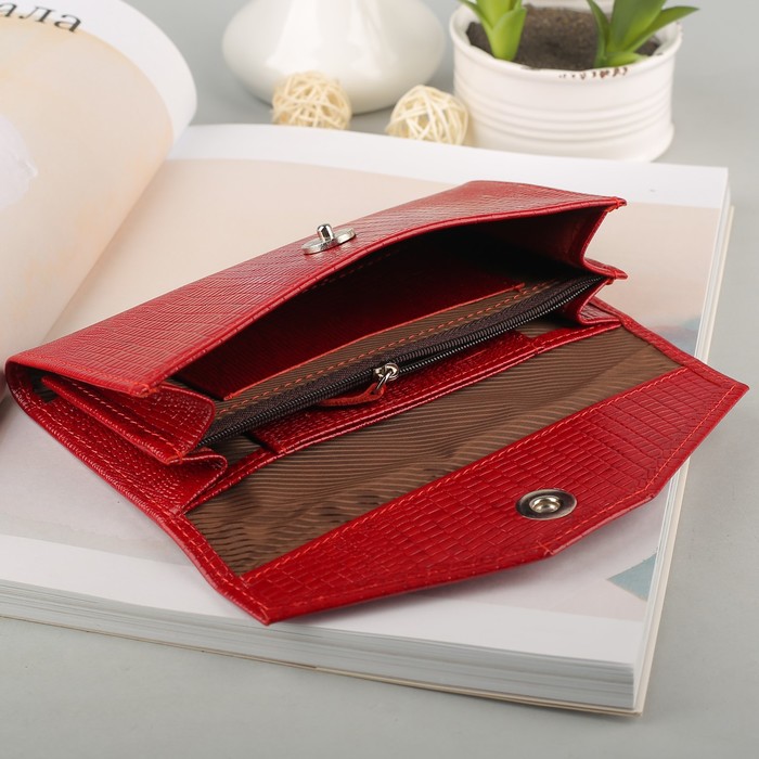 Кошелёк женский, 2 отдела, для карт, наружный карман, на магнитной кнопке, игуана, цвет красный