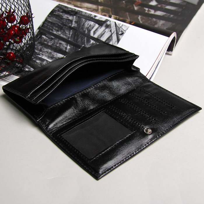 Кошелёк женский, 2 отдела, для карт, наружный карман, наплак, цвет чёрный