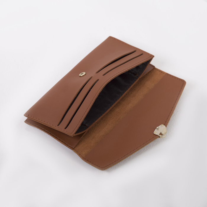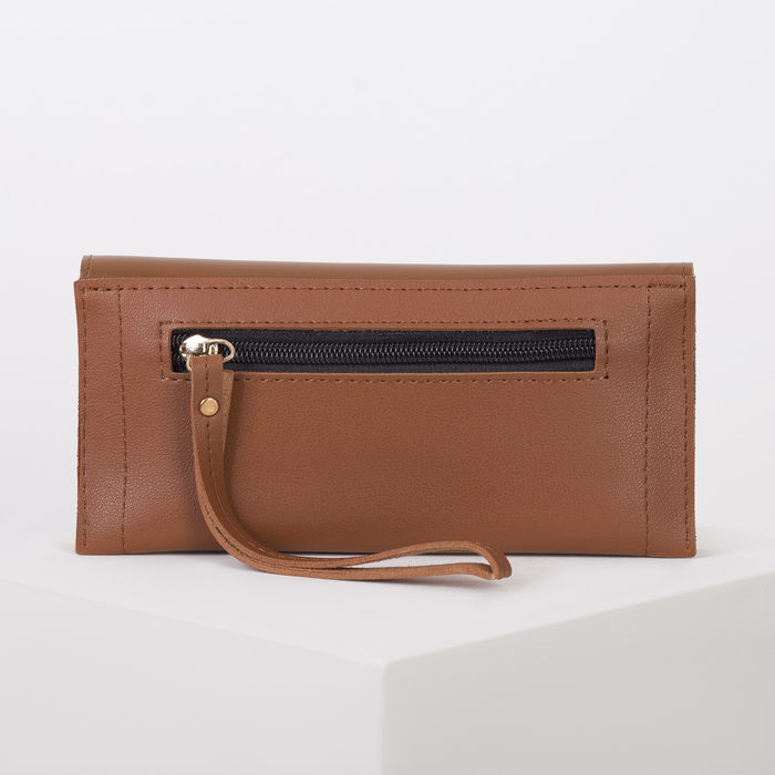 Кошелёк женский, 2 отдела, для карт, наружный карман, ручка, цвет коричневый