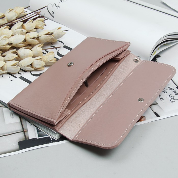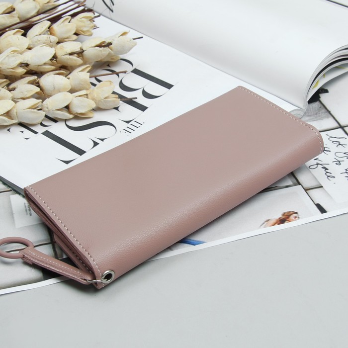 Кошелёк женский, 2 отдела, для карт, наружный карман, ручка, цвет пудровый