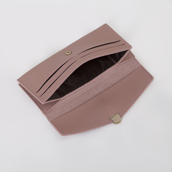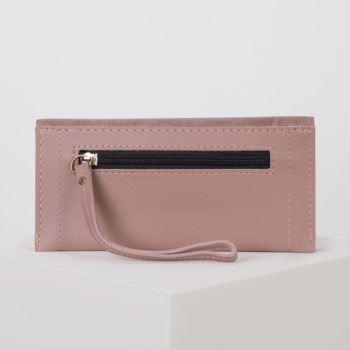 Кошелёк женский, 2 отдела, для карт, наружный карман, ручка, цвет пудровый