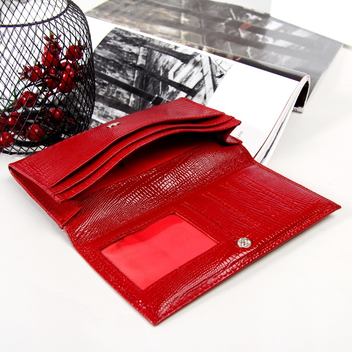 Кошелёк женский, 2 отдела, для карт, наружный карман, ящер, цвет тёмно-красный