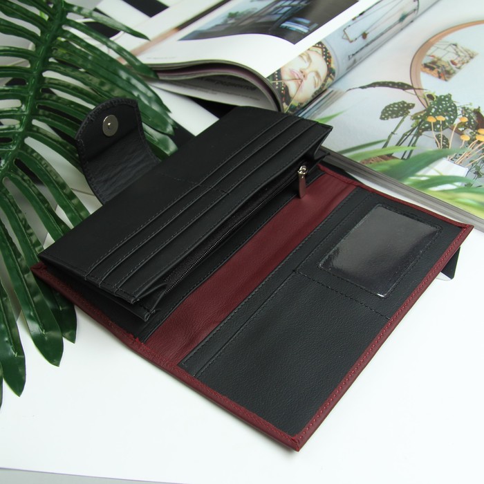 Кошелёк женский, 2 отдела, для карт, олимп бордово-чёрный