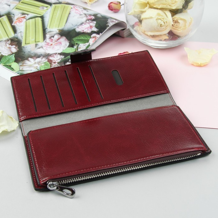 Кошелёк женский, 2 отдела, для кредиток, для монет, цвет бордовый
